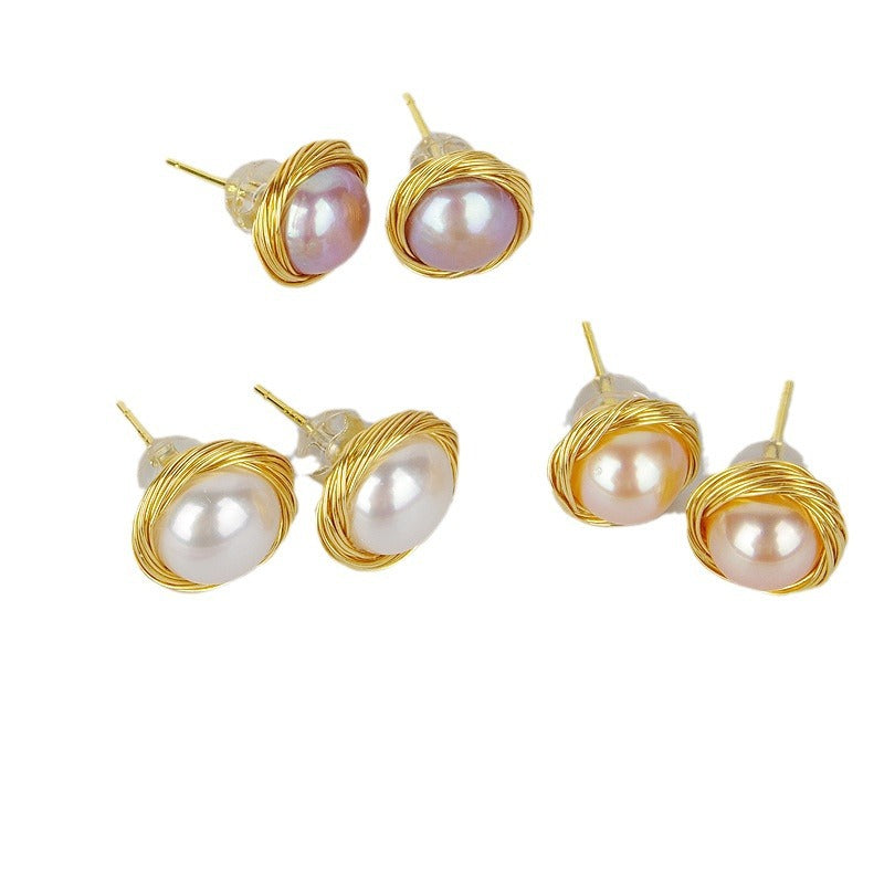 ✨ S925 Sterling Silver Freshwater Pearl Earrings | Minimalist Boho Studs | Natural Pearl Hoop Earrings for Women